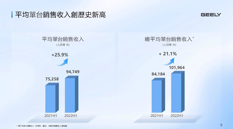 吉利汽车平均单车销售收入;图片来源:吉利汽车线上发布会截图